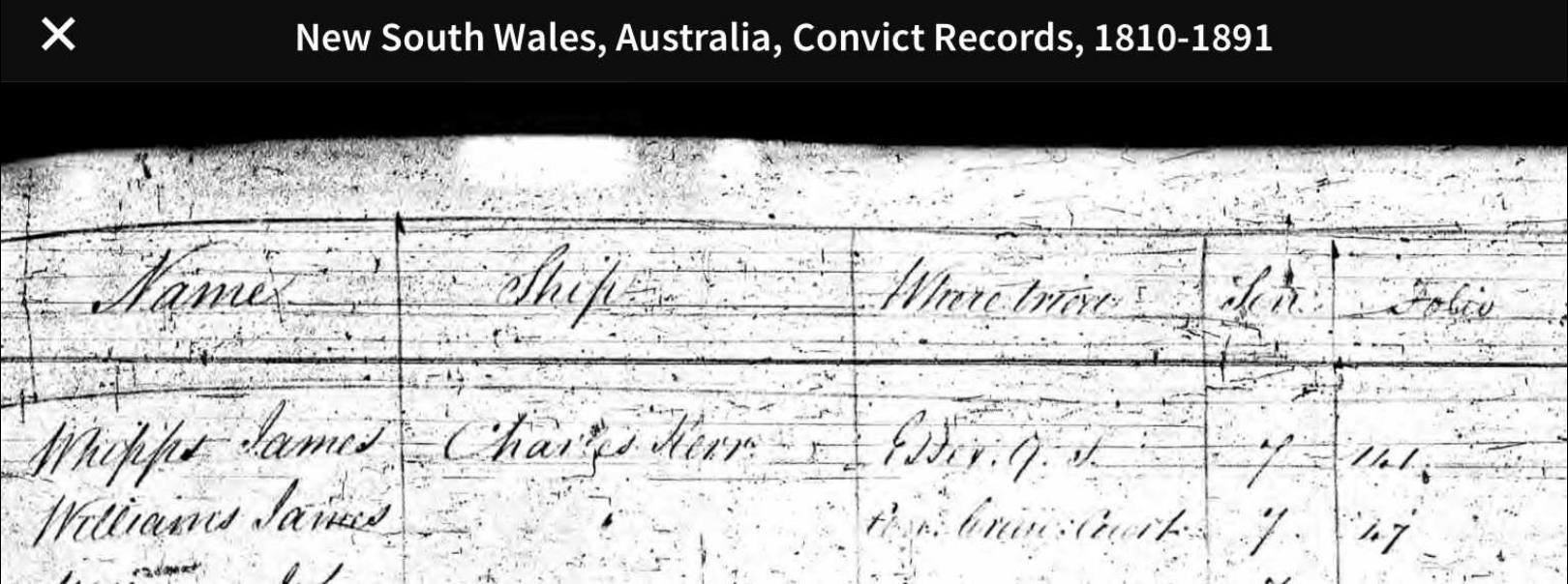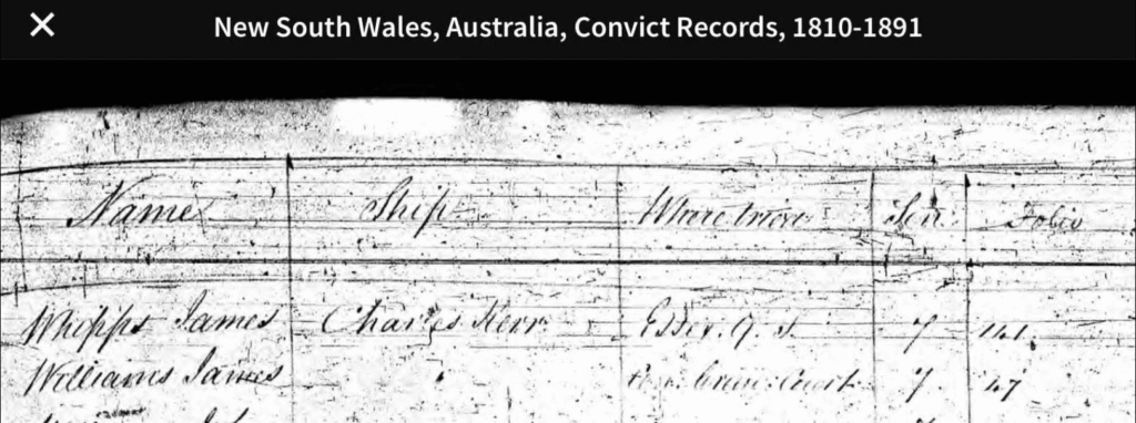 G’day, Welcome to the Australian Chapter of Whipps Genealogy. James the Convict, arrived in Botany Bay in 1837 on the Convict ship Charles Kerr to serve a 7 year Sentence.